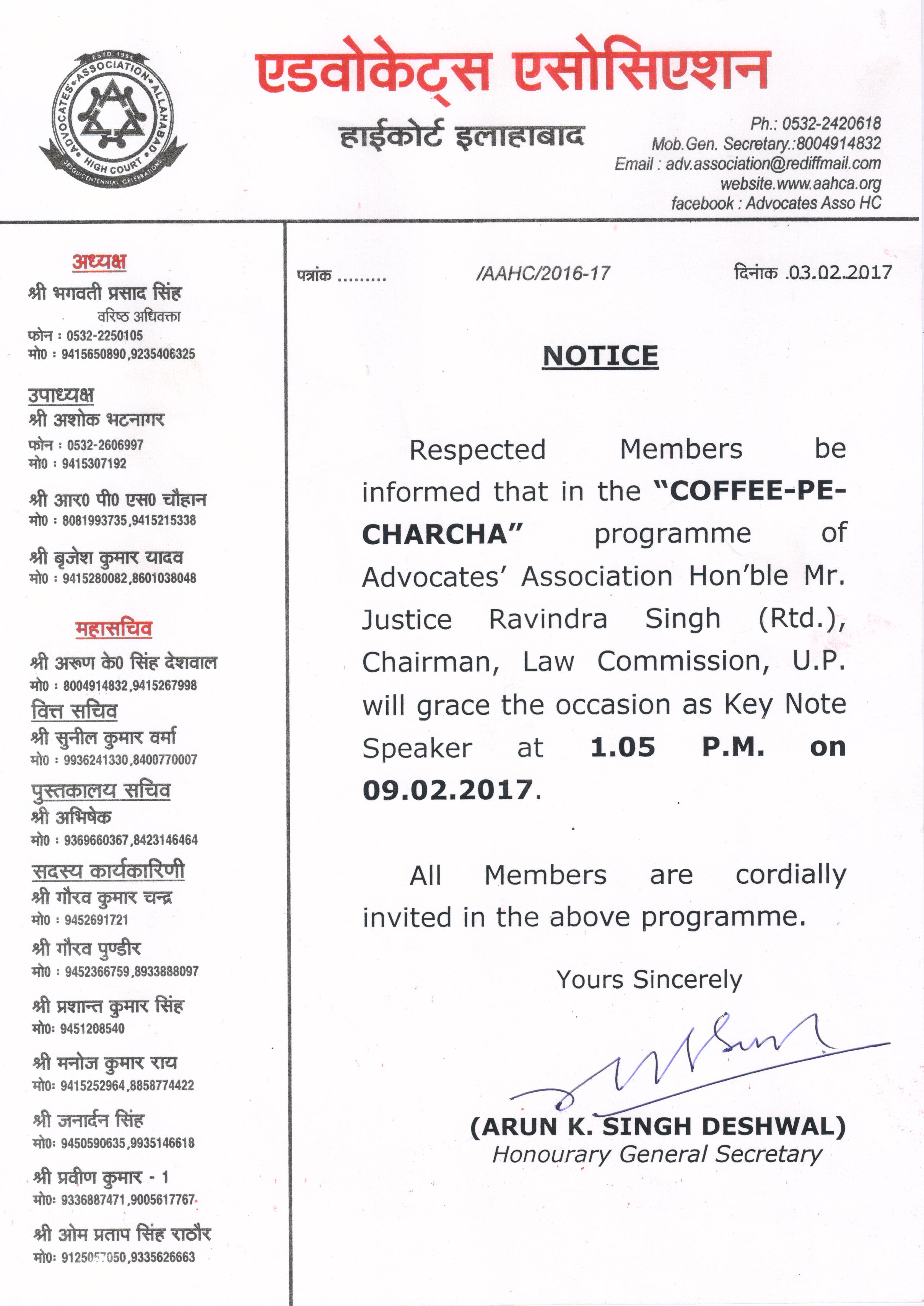 NOTIFICATION: 20170206001 NOTICE DETAILS: