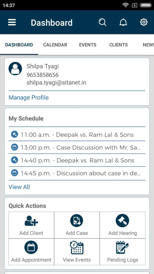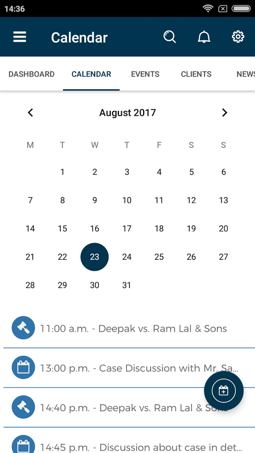 Let us introduce our new mobile app designed for Lawyers and Law Firms to keep a proper record of different cases and client management. The Calendar© is embedded in the .com, a Discovery Platform for Law and it is available to the registered users for free of cost. The app is designed around the workflow and daily schedule of Lawyers, aimed to improve efficiency and productivity, App is the only app designed around the concept of "Zero Repetitive Work". The only App to manage multiple cases under a single client's name. You can store all the case related information in one place to eliminate the maintenance at multiple data locations and keeping track of all of it.